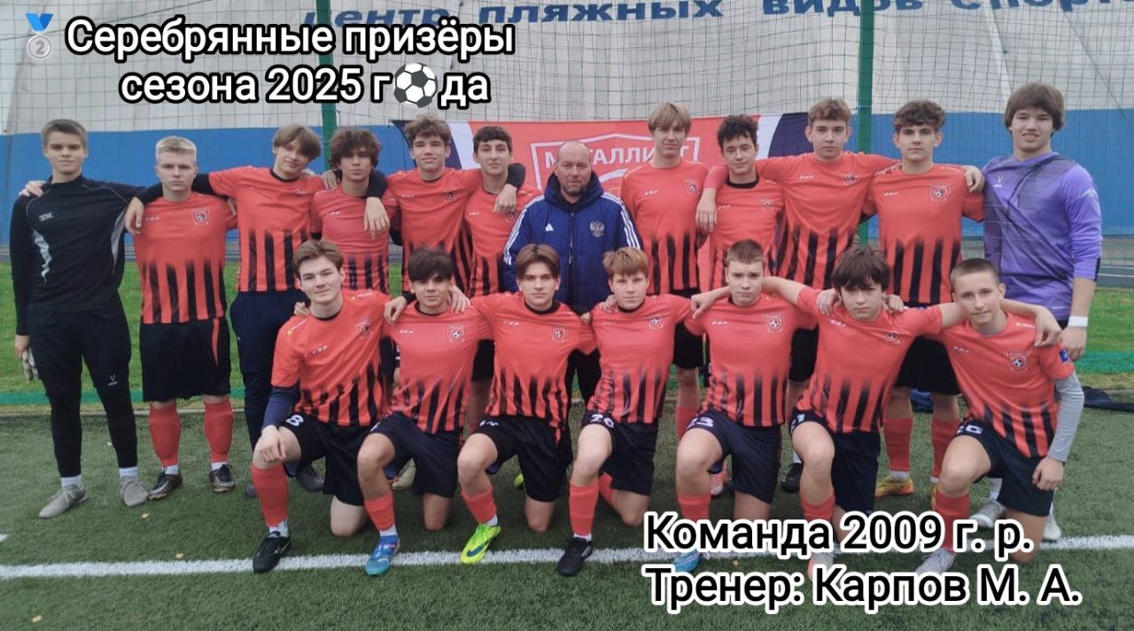 👕🥈 Футболисты 2009 года рождения под руководством тренера-преподавателя Карпова М. А. завоевали серебряные медали в Спортивных соревнованиях Московской области по футболу.